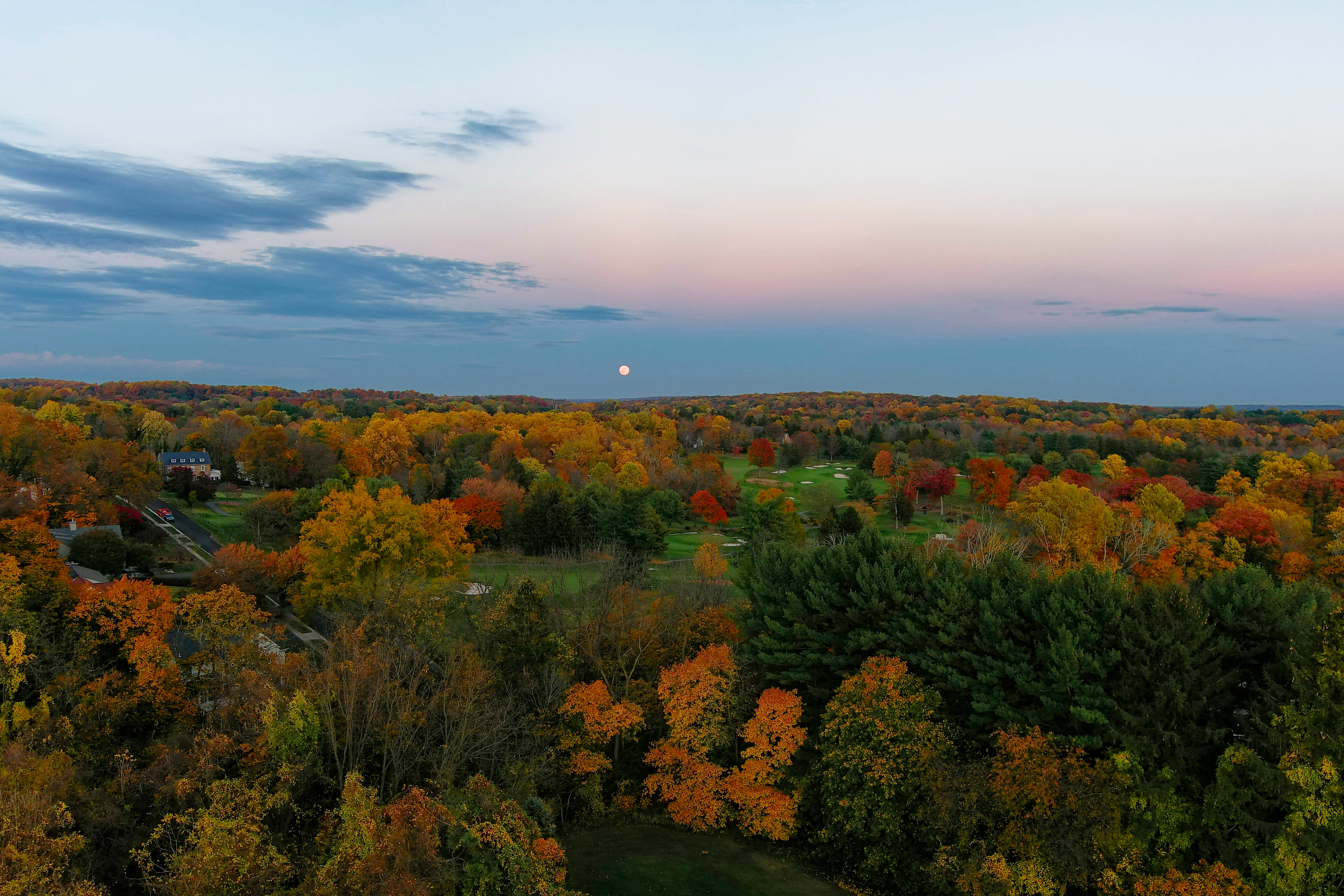 Full moon over Doylestown Country Club, Doylestown, PA November 2023.